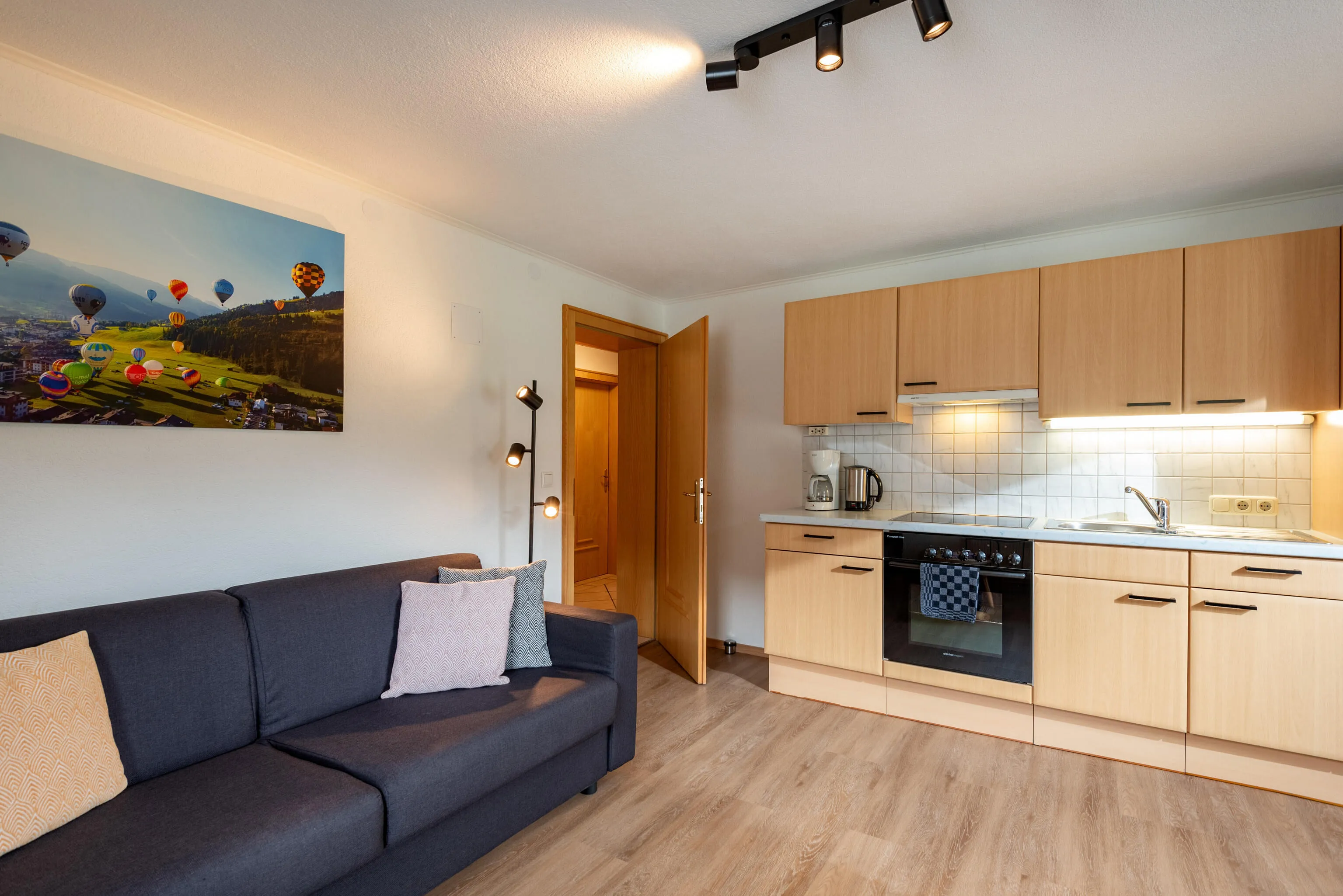 Sie wollen bei schönem Wetter und angenehm warmer Morgensonne auf der Terrasse Frühstücken und den Hahnekamm sehen um Ihre Tagestour zu planen? Dann ist das Apartement Gaisberg richtig für sie. Sie liegt südseitig im 1. Stock, mit Terrasse ist ca. 50 m² groß, hat ein gemütliches Schlafzimmer und im Wohnraum eine ausziehbare Schlafcouch.